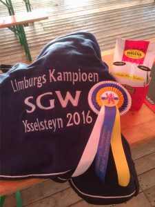 Chanou Steegers LIMBURGS KAMPIOEN SGW 1 oktober 2016 Chanou Steegers met Celine LIMBURGS KAMPIOEN SGW! Vandaag won Chanou Steegers met haar pony Celine met SGW in Ysselsteyn in de klasse CB. Daarmee is ze limburgs kampioen geworden. Chanou van harte proficiat!